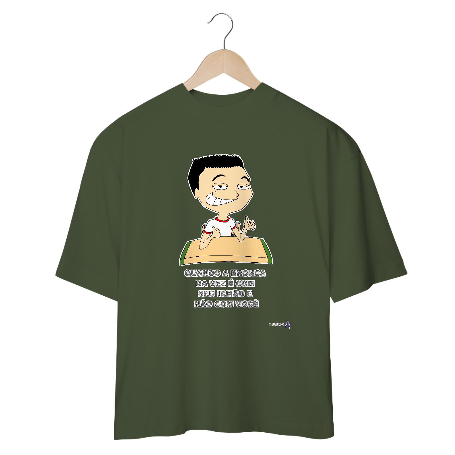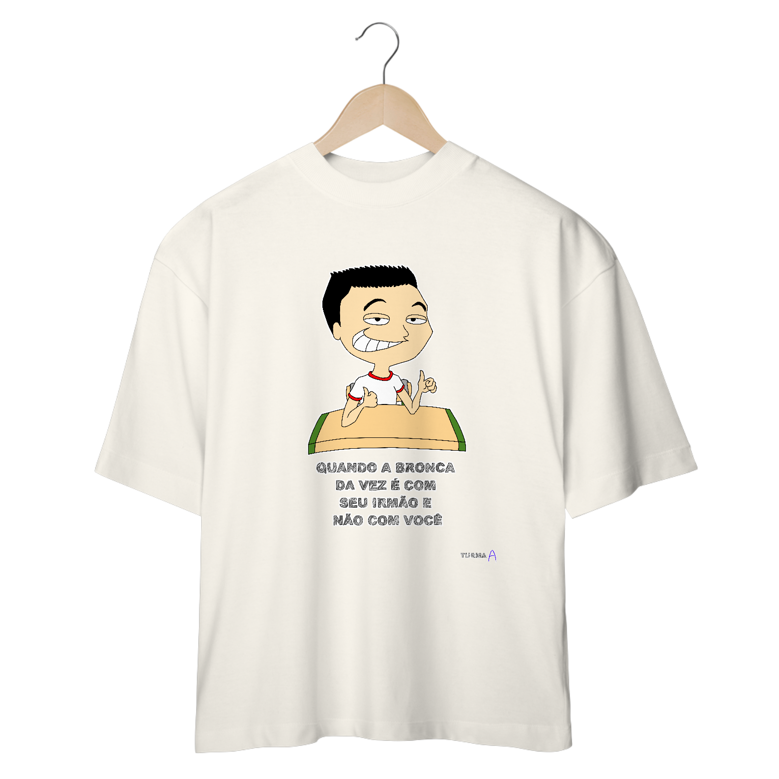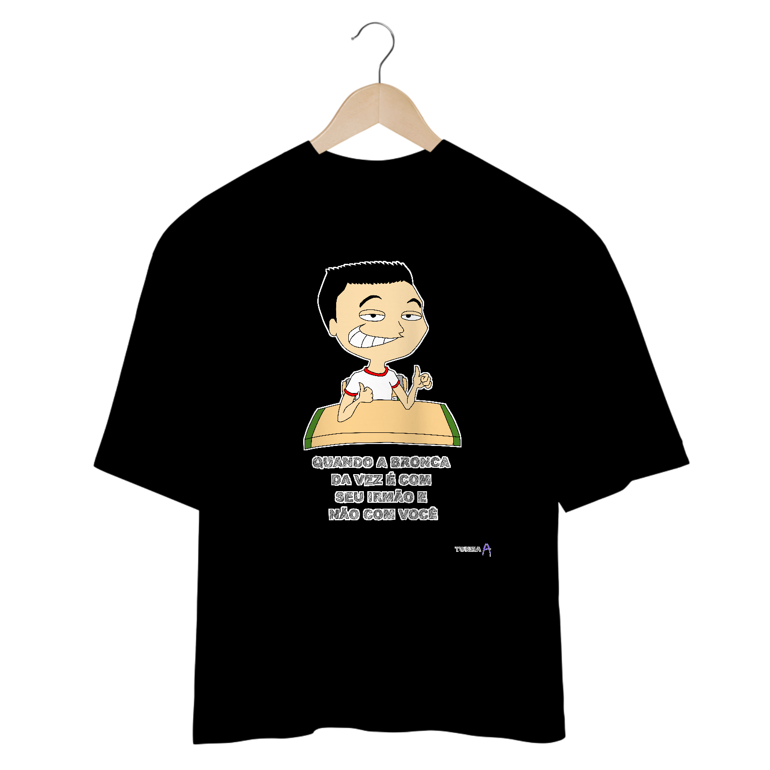 Cores do produto: Como cada tela de computador ou celular tem seu próprio jeito de mostrar cores, então a cor da sua camiseta e da estampa pode ser um pouco diferente do que você viu online.